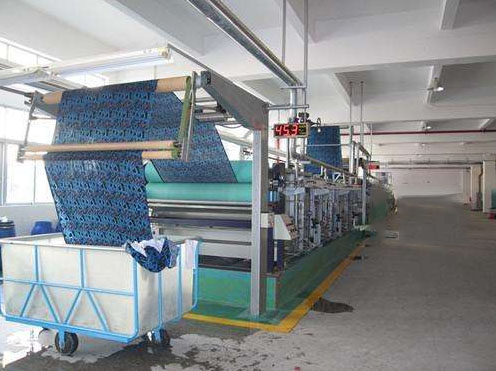 數碼印花打印蒸化顯色后,需要去除布料上沒有反應和水解的浮色。如果未固著的染料過多,在水洗過程中會產生粘色、白地污染。水洗工藝的基本流程為: