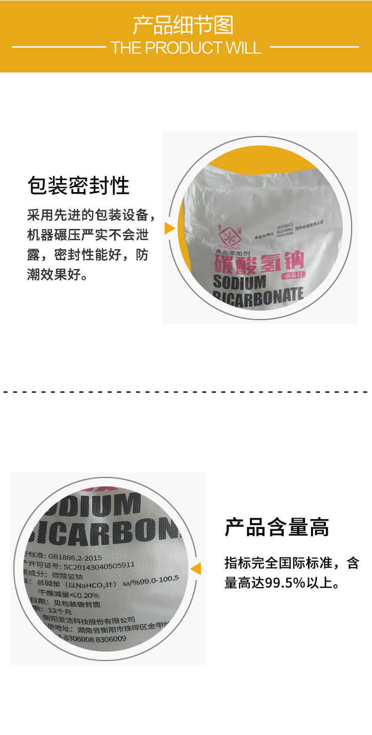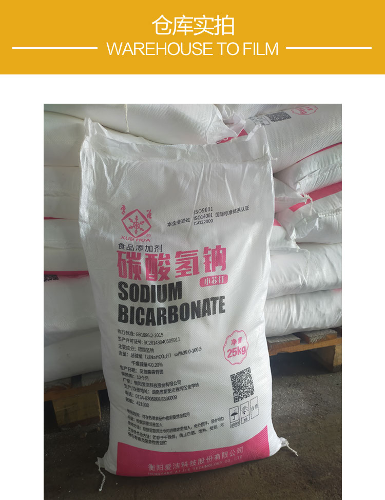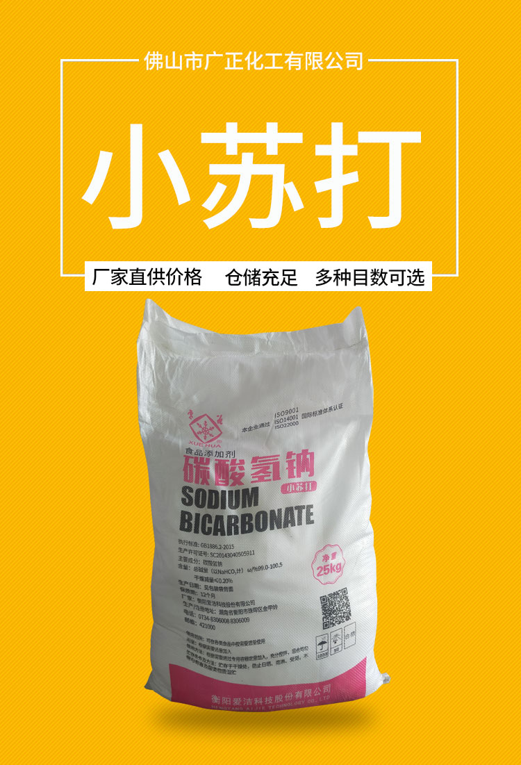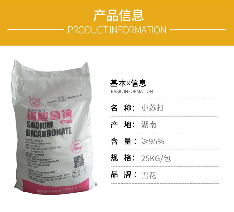 雪花食品級小蘇打的(de)化(hua)學名稱叫碳酸氫(qing)鈉(na),經常用它當發酵粉做饅頭、餅干等(deng)食品添加劑(ji)。食品級小蘇打主要用于食品、飲料汽水和冷飲中二氧化(hua)碳的(de)發生劑(ji)。